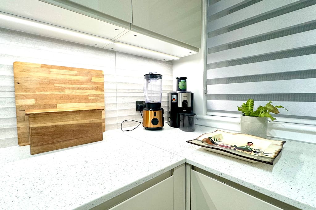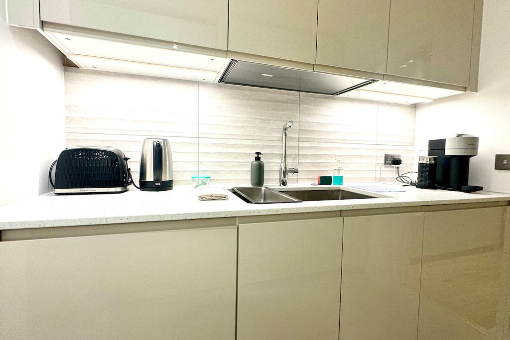 - Küche Bereich, in dem Gäste ihre eigenen Mahlzeiten zubereiten können