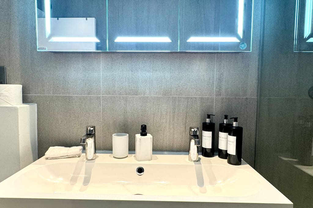 - Wesentliches Handtücher, Bettlaken, Seife, Toilettenpapier und Kissen